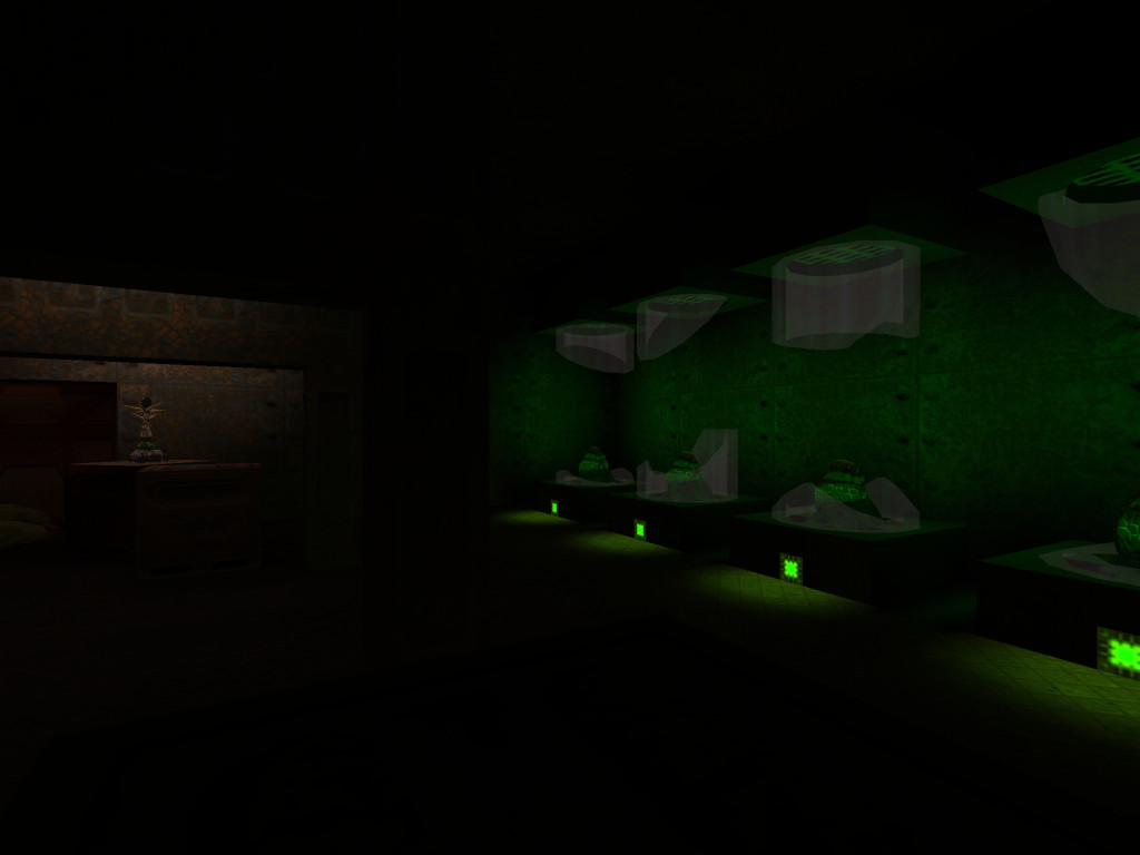 | Ranger has been at it again, this time the result is Toxic Waste Dump (551kb). Although inspired by ThePyro's map of the similar name, this map is definitely different enough not to be considered a 'remake'. Some nice screenshots taken with the new R1GL 0.0.9 OpenGL Renderer for Quake II (click for full size 1024x768 version):