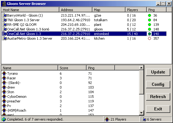 | Gloom Server Browser | Posted by R1CH on Thursday, December 13, 2001 |