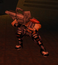 When invisible, the guardian will regenerate armor. The guardian can also infest human corpses, implanting an alien creature that will damage any nearby unprotected humans (USE key). The USE key can also be used to eat C4 explosive planted by a commando, saving the nest from destruction. The two spike grenades the guardian is equipped with will stick to any surface and explode into a shower of spikes if a human gets too close. These spikes will remain on the ground for a short period making the area impassable for humans. |